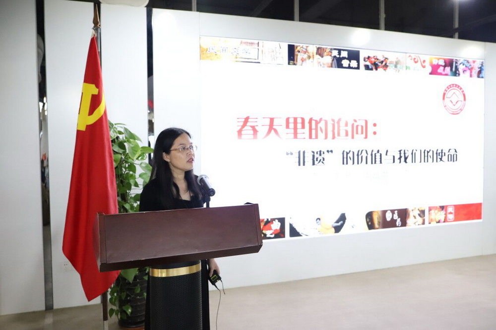 为更好地贯彻落实《福建省非物质文化遗产条例》,提高人民群众非物质文化遗产保护意识,传承、弘扬中华优秀传统文化,6月10日下午,学校邀请福建省非物质文化遗产学会副会长兼秘书长,莆田学院教授陈祖芬博士以“春天里的追问——‘非遗’的价值与我们的使命”为主题为全校师生带来“论道·启思”文化系列沙龙第四季第一讲。讲座由资源建设与管理中心副主任陈明阳主持,来自校内各部门代表三十余人参加了活动。