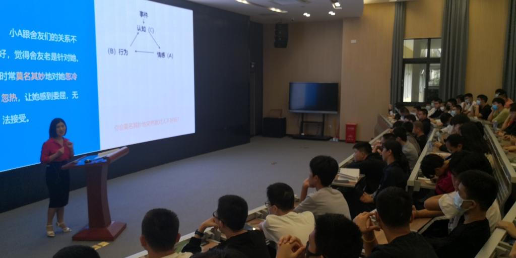叶纯菁以手指交叉小游戏导入,指出新生入学可能会面临的心理状况,结合案例分析同学们入学常见问题。引导同学们通过对认知、情感、行为建立正确的感知,明确需求,换位思考,克服入学所面临的不良情绪。最后,她还介绍了学校心理咨询室预约办法和教育部华中师范大学的心理援助热线的使用方法,鼓励同学们在遇到心理问题时及时向专业人士寻求帮助。