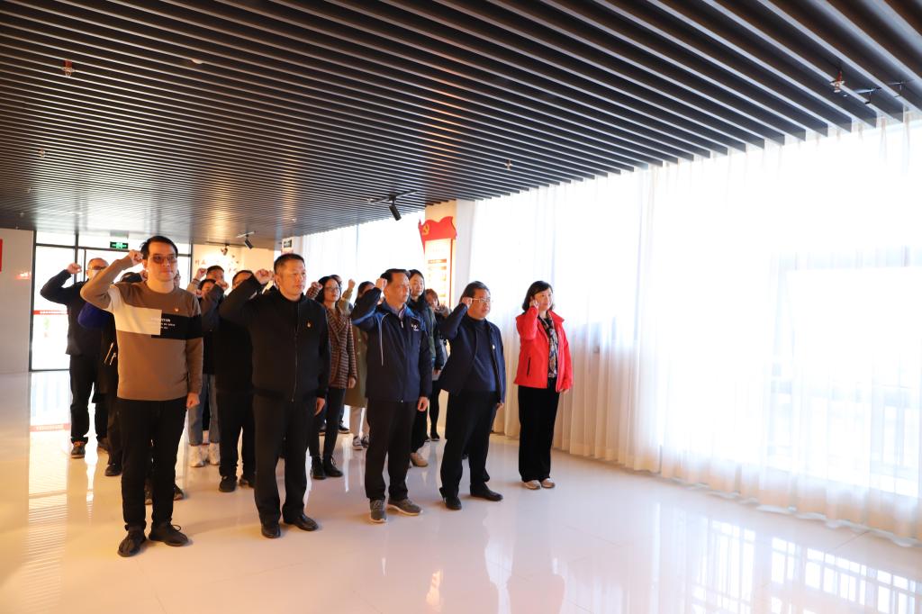 在党员政治生活馆中,校党委书记陈兴炎带领全体党员重温了入党誓词。面对鲜红的党旗,全体党员重温入党誓词,铿锵有力的宣誓声,彰显党员不忘初心、牢记使命、矢志奋斗的诺言和决心。