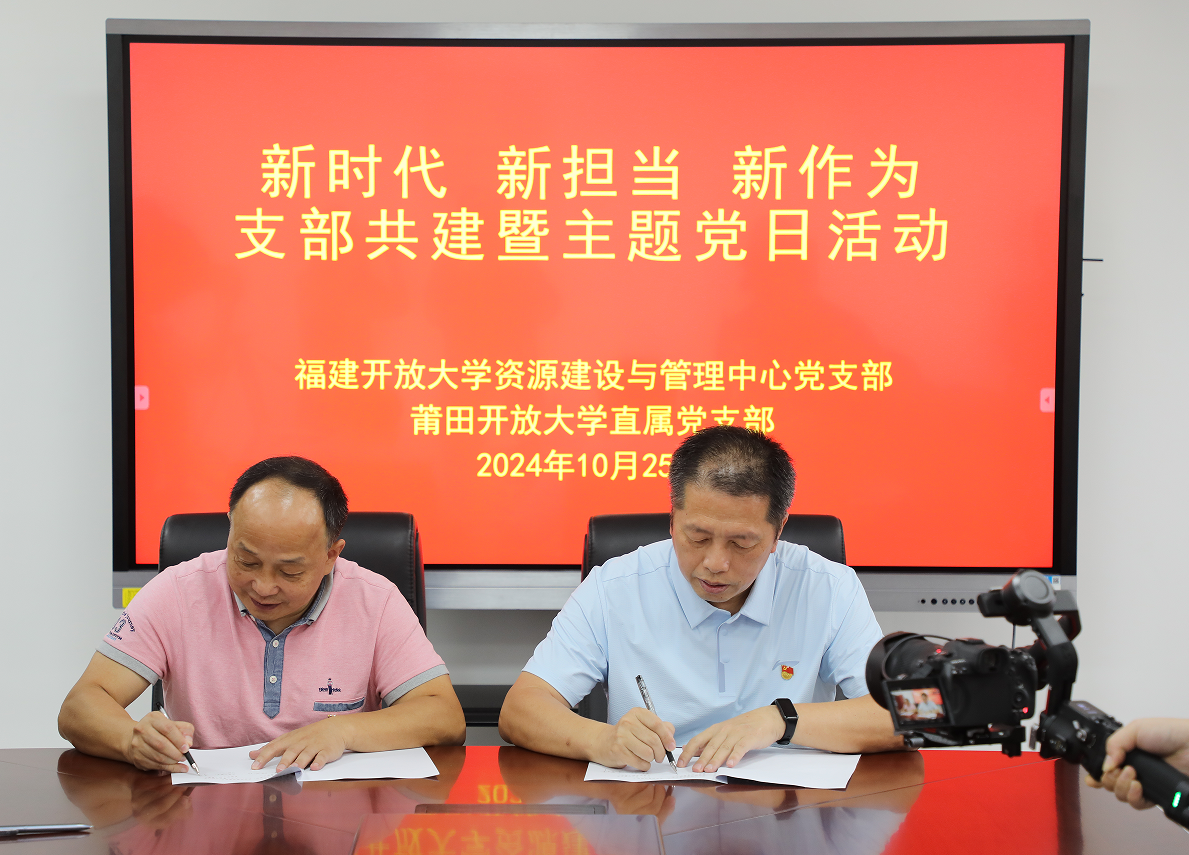 随后,双方举行支部共建签约仪式,签订了《福建开放大学基层党组织联建共建协议书》。