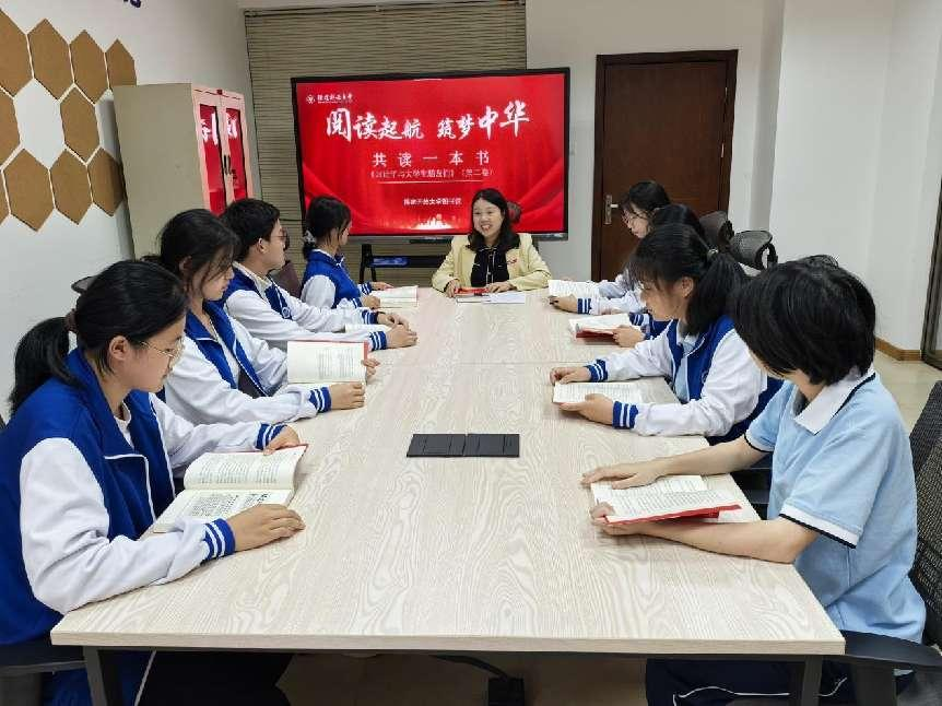 在共读一本书的活动中,同学们共同翻开了《习近平与大学生朋友们》(第二卷)的扉页。他们仿佛穿越时空,与总书记进行了一场跨越书页的深刻对话。书中流淌的智慧与力量,为同学们点亮了前行的明灯,指引他们向更加广阔的未来迈进。正如习近平总书记所言:“青年一代有理想、有本领、有担当,国家就有前途,民族就有希望。”通过共读经典,同学们不仅汲取了知识的养分,更在心中种下了理想的种子,坚定了为实现中华民族伟大复兴的中国梦贡献力量的决心。