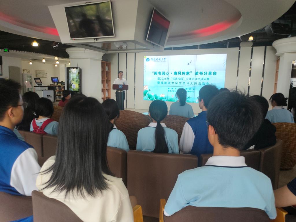 在第30个“世界读书日”来临之际,为进一步推进“书香校园”建设,营造多维立体阅读环境。4月22日,校团委、职业学院、资源建设与管理中心共同组织的“阅清新福建・读闽版好书——书香校园与廉洁文化同行”系列活动在学校图书馆三楼数字体验中心正式启动。活动以“闽书润心・廉风传家”为主题,通过读书分享会、书评大赛、文化实践等形式,引导青年师生深挖闽版典籍中的廉洁基因,践行文化传承。校团委、资源建设与管理中心青年党员、入党积极分子、职业学院30余名学生代表参与活动。