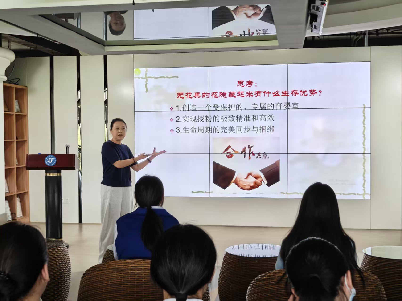 为丰富校园文化生活,激发师生对自然科学的兴趣,10月23日下午,图书馆在明德楼三楼数字学习体验中心举办“论道・启思”主题沙龙活动,邀请福建农业职业技术学院郑敏副教授,以“沉默王国的无声战斗--植物的智慧”为题进行分享。职业学院30余名同学参加了活动。