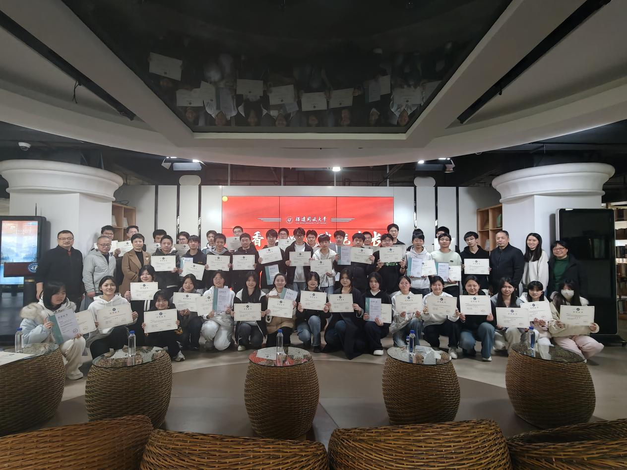 为表彰阅读先进、涵养书香文化,进一步激发全校师生的阅读热情,1月16日下午,“书香润心・赋能成长 —— 阅读活动表彰暨2026年FULink影评活动启动仪式在明德楼三楼图书馆数字学习体验中心大厅举行 。资源建设与管理中心主任陈明阳、职业学院副院长汪媚、职业学院团委书记林舒俐、图书馆馆长黄国文、杜嵩泉出席活动,获奖师生代表及图书馆工作人员参与了活动。