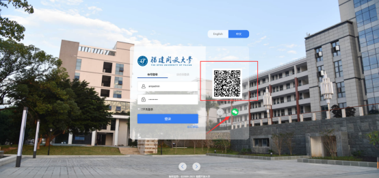 1、 打开浏览器,访问智慧校园平台,地址为 https://i.fjou.edu.cn,在登录界面中,点击“微信图标”,进行微信扫码。