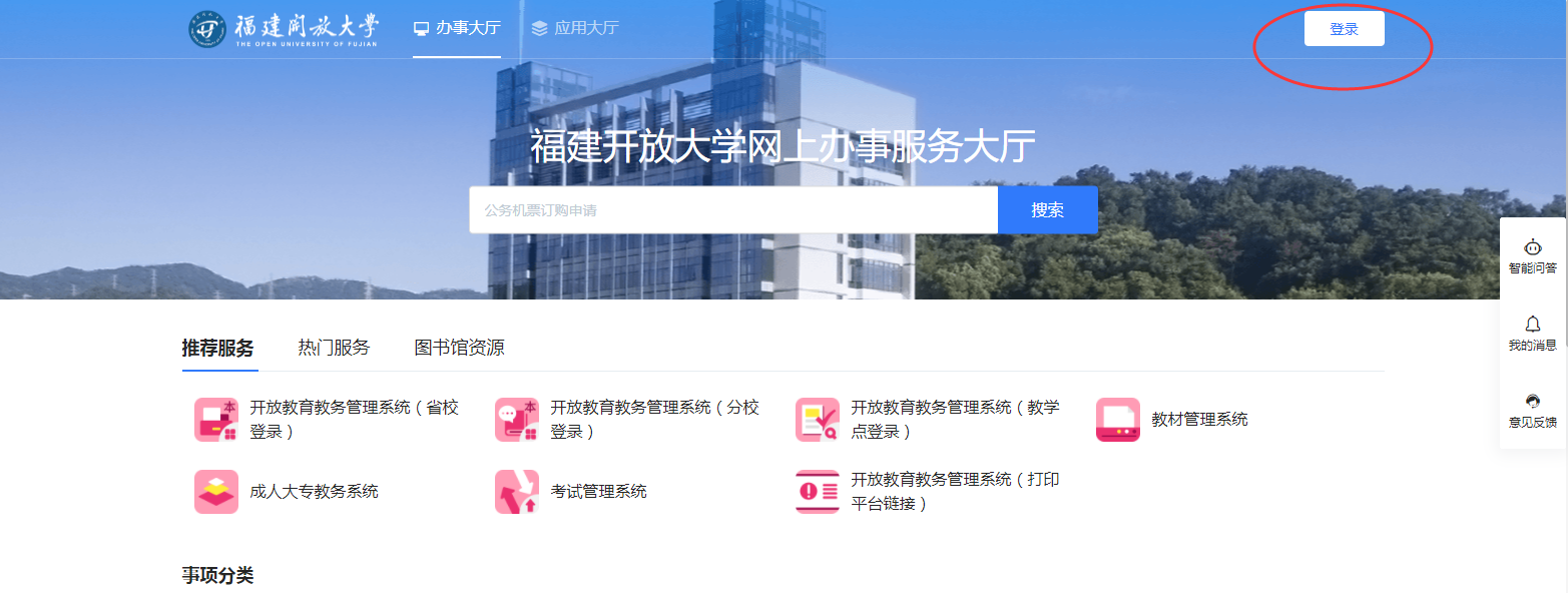 1、 打开浏览器,访问智慧校园平台,地址为 https://i.fjou.edu.cn,使用智慧校园平台统一身份认证系统的账号密码登录。