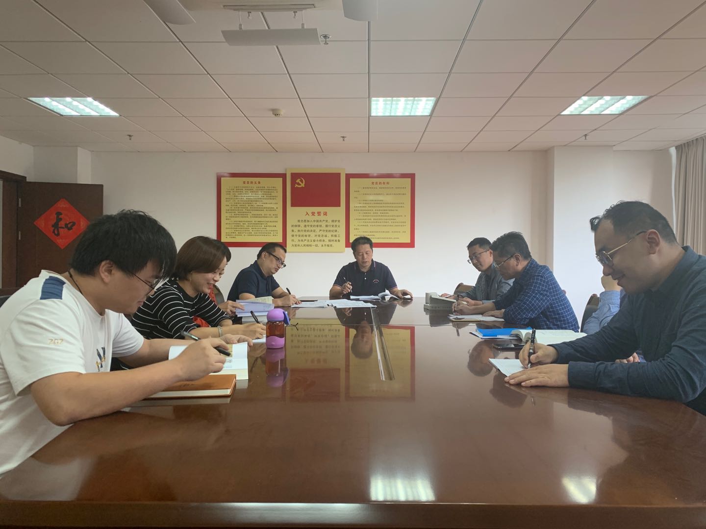 夏果兵、蒋忠贵做主题发言,其他党员同志结合岗位实际,分享了自己的学习心得。